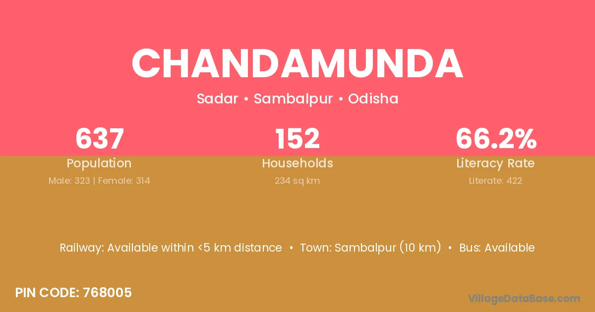 Chandamunda village has a total population of 637 people, of which 323 are males and 314 are females.