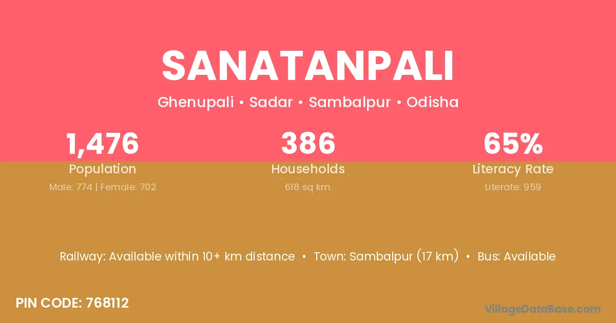 Sanatanpali village has a total population of 1,476 people, of which 774 are males and 702 are females.