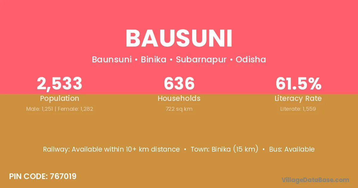 According to Census 2011 information, the village code of Bausuni village is 767019.