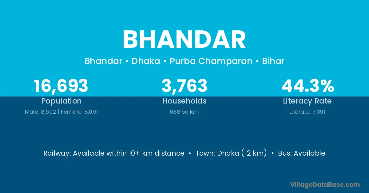 Bhandar village has a total population of 1,503 people, of which 737 are males and 766 are females.
