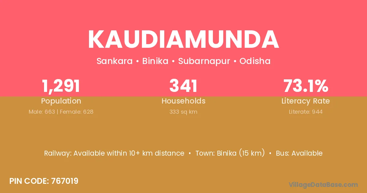 Kaudiamunda village has a total population of 1,291 people, of which 663 are males and 628 are females.