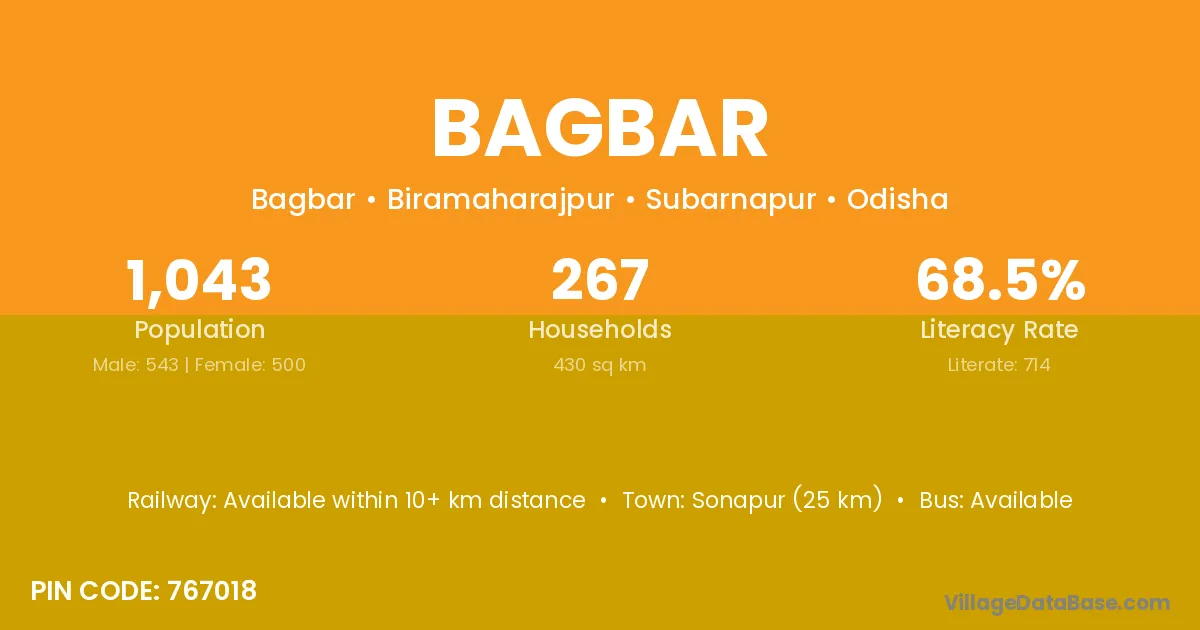 Bagbar village is located in the Biramaharajpur Tehsil of the Subarnapur district in Odisha .