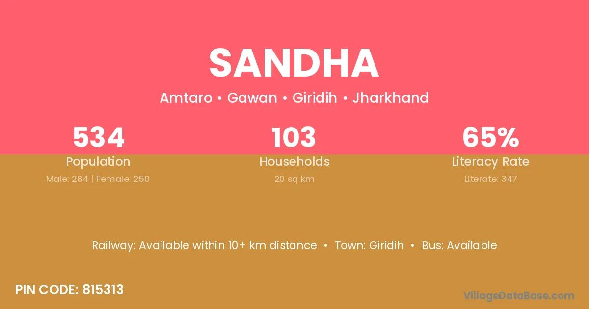 Sonapur (23 km) is the nearest town to Sandha village for major economic activities and is located approximately 23 km away.