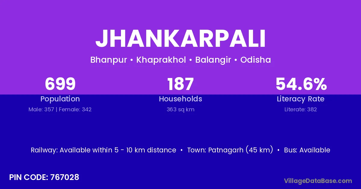 Tarbha (26 km) is the nearest town to Jhankarpali village for major economic activities and is located approximately 26 km away.