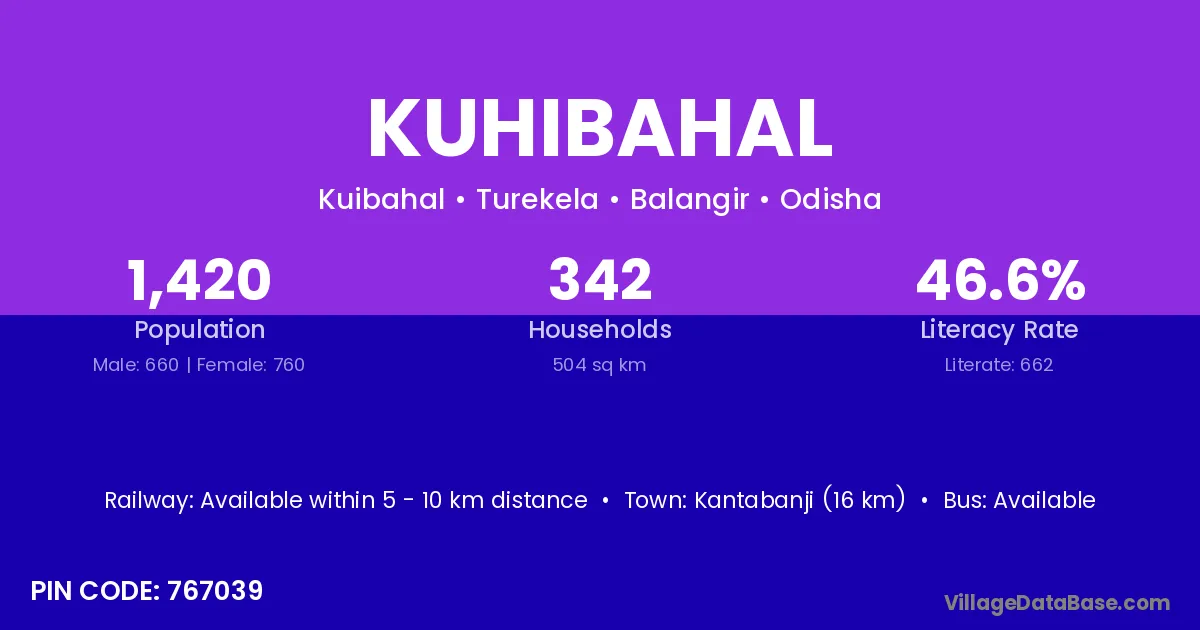Binika (25 km) is the nearest town to Kuhibahal village for major economic activities and is located approximately 25 km away.