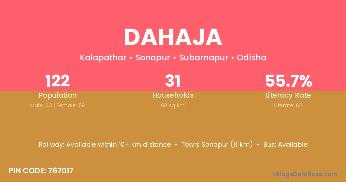 Sonapur (11 km) is the nearest town to Dahaja village for major economic activities and is located approximately 11 km away.