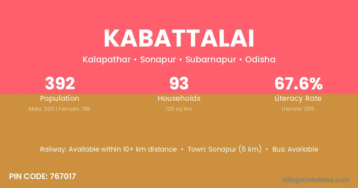 Kabattalai village has a total population of 392 people, of which 203 are males and 189 are females.