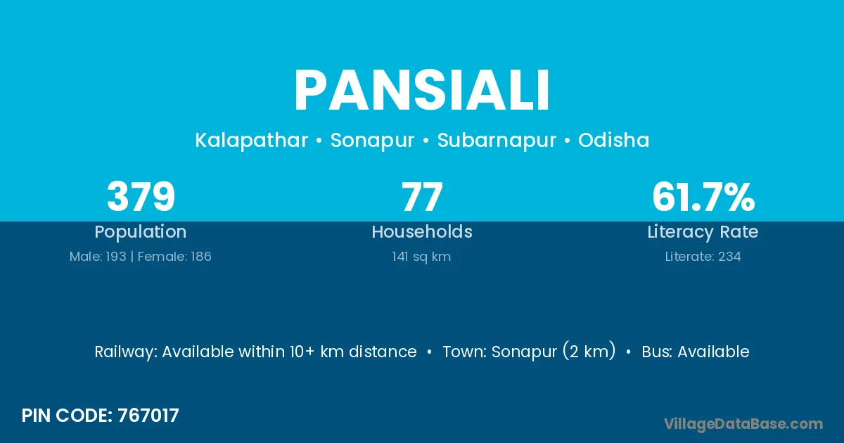 According to Census 2011 information, the village code of Pansiali village is 767017.