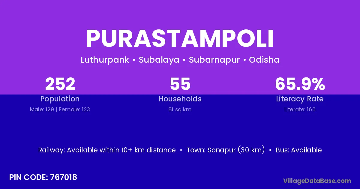 Purastampoli village has a total population of 252 people, of which 129 are males and 123 are females.