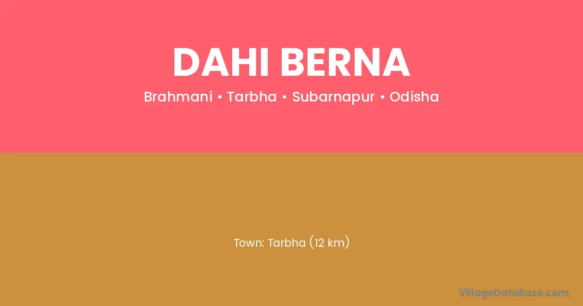 Tarbha (12 km) is the nearest town to Dahi Berna village for major economic activities and is located approximately 12 km away.