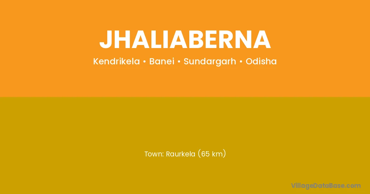 Raurkela (65 km) is the nearest town to Jhaliaberna village for major economic activities and is located approximately 65 km away.
