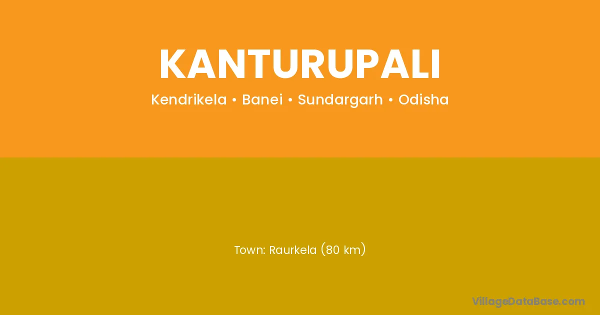 Raurkela (80 km) is the nearest town to Kanturupali village for major economic activities and is located approximately 80 km away.