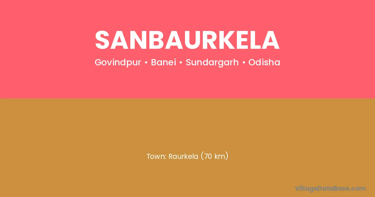 Raurkela (70 km) is the nearest town to Sanbaurkela village for major economic activities and is located approximately 70 km away.