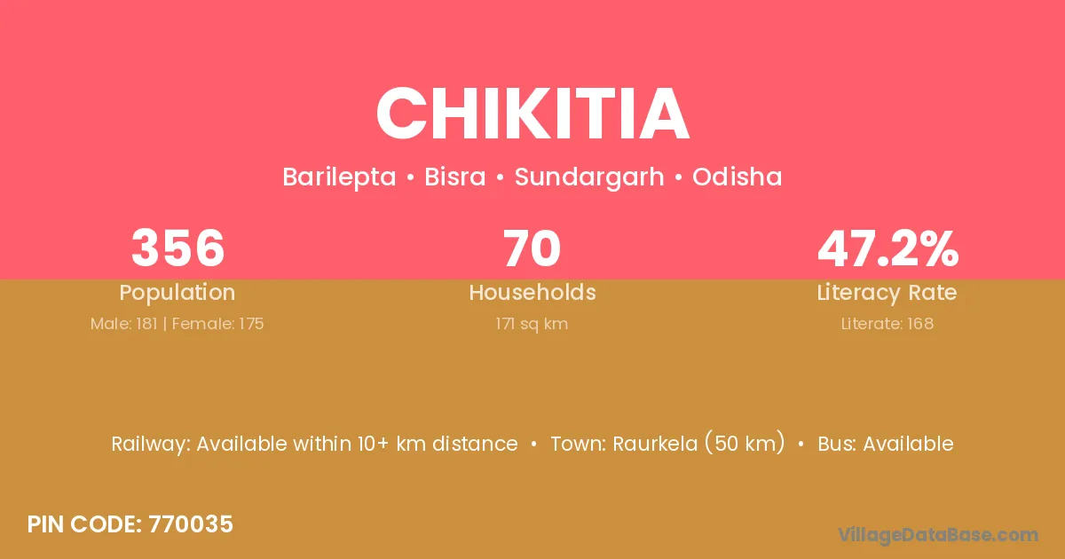 Chikitia village has a total population of 356 people, of which 181 are males and 175 are females.