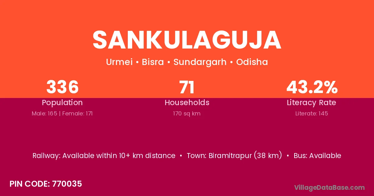 Biramitrapur (38 km) is the nearest town to Sankulaguja village for major economic activities and is located approximately 38 km away.