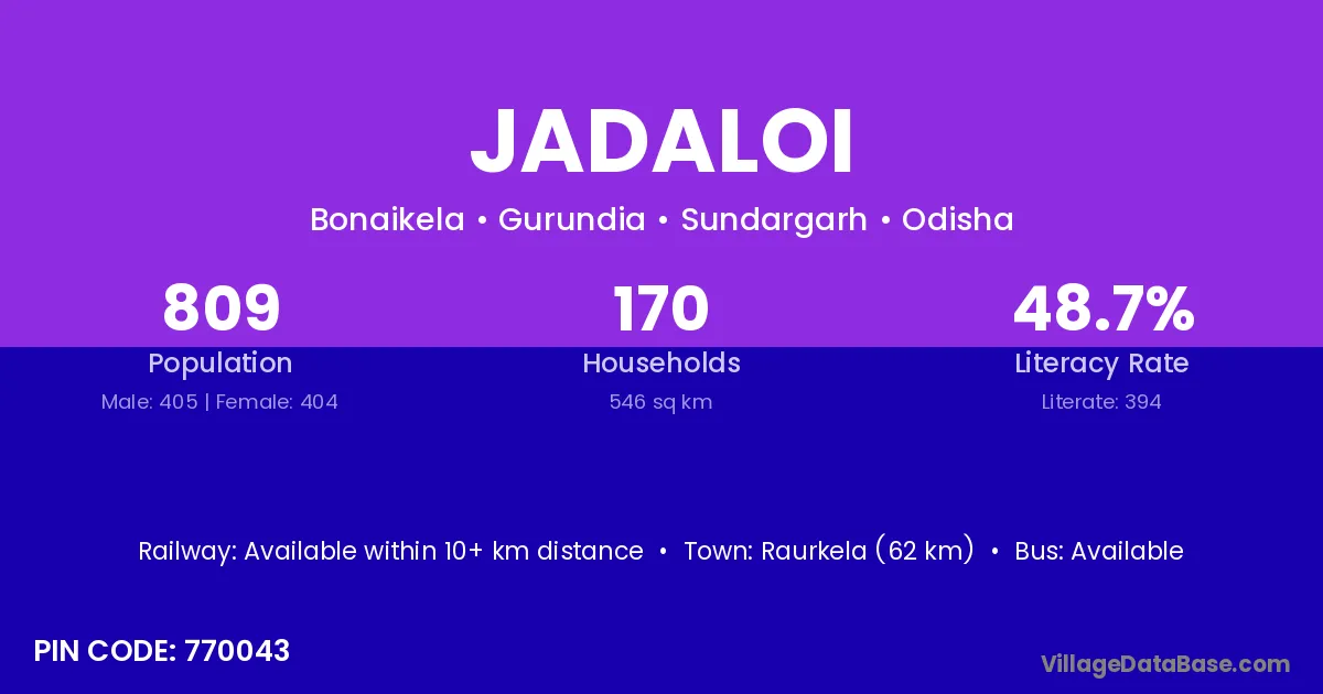 Jadaloi village is located in the Gurundia Tehsil of the Sundargarh district in Odisha .