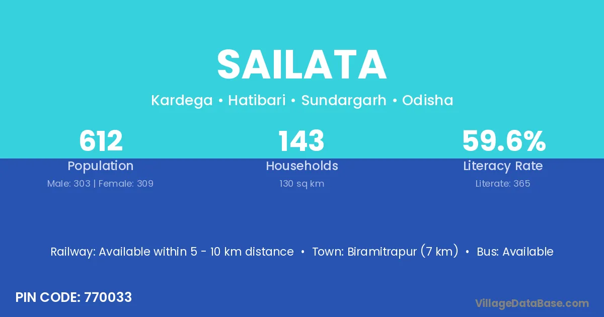 Biramitrapur (7 km) is the nearest town to Sailata village for major economic activities and is located approximately 7 km away.