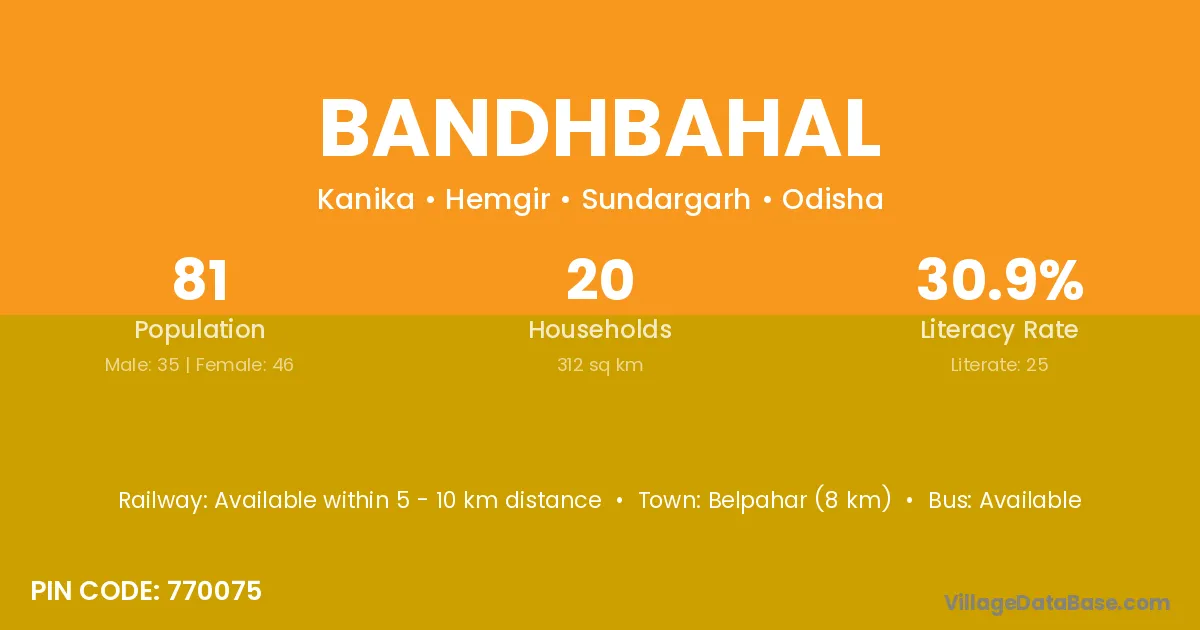 Belpahar (8 km) is the nearest town to Bandhbahal village for major economic activities and is located approximately 8 km away.