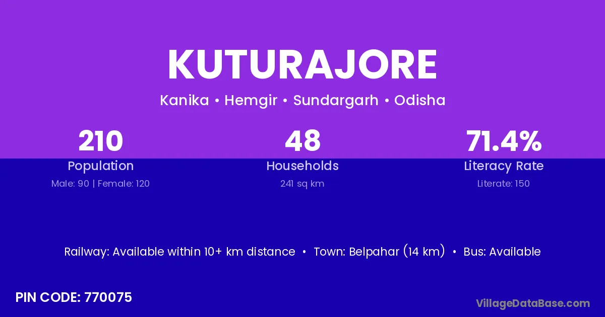 Belpahar (14 km) is the nearest town to Kuturajore village for major economic activities and is located approximately 14 km away.