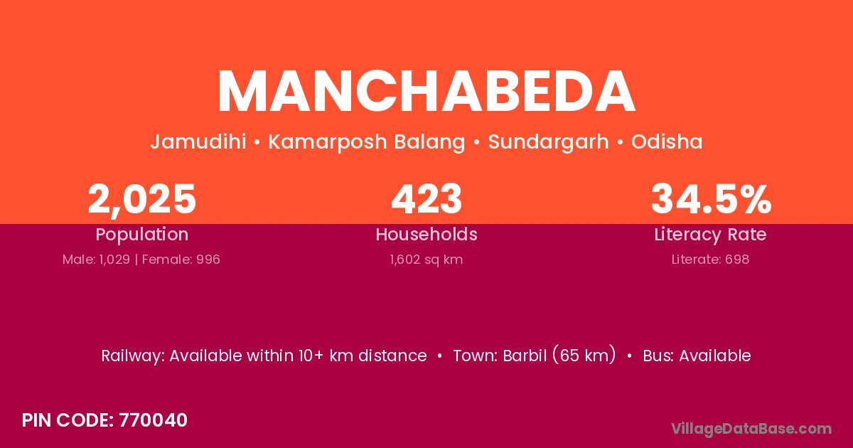 Manchabeda village is located in the Kamarposh Balang Tehsil of the Sundargarh district in Odisha .