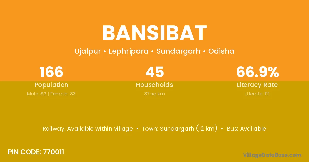 Sundargarh (12 km) is the nearest town to Bansibat village for major economic activities and is located approximately 12 km away.