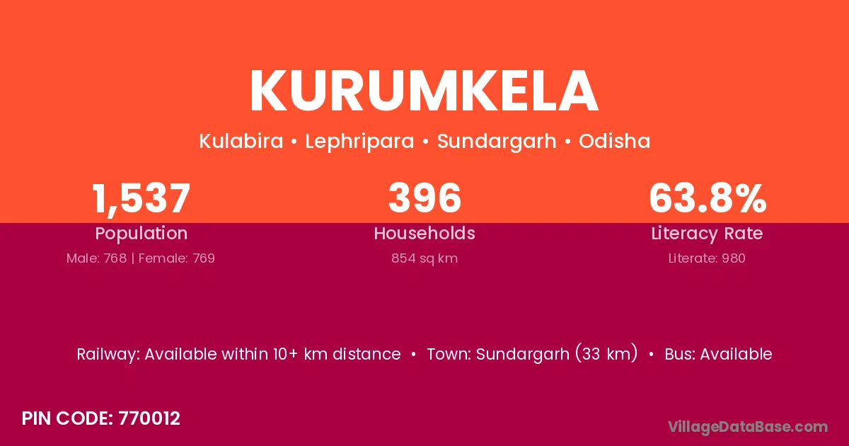 Sundargarh (33 km) is the nearest town to Kurumkela village for major economic activities and is located approximately 33 km away.