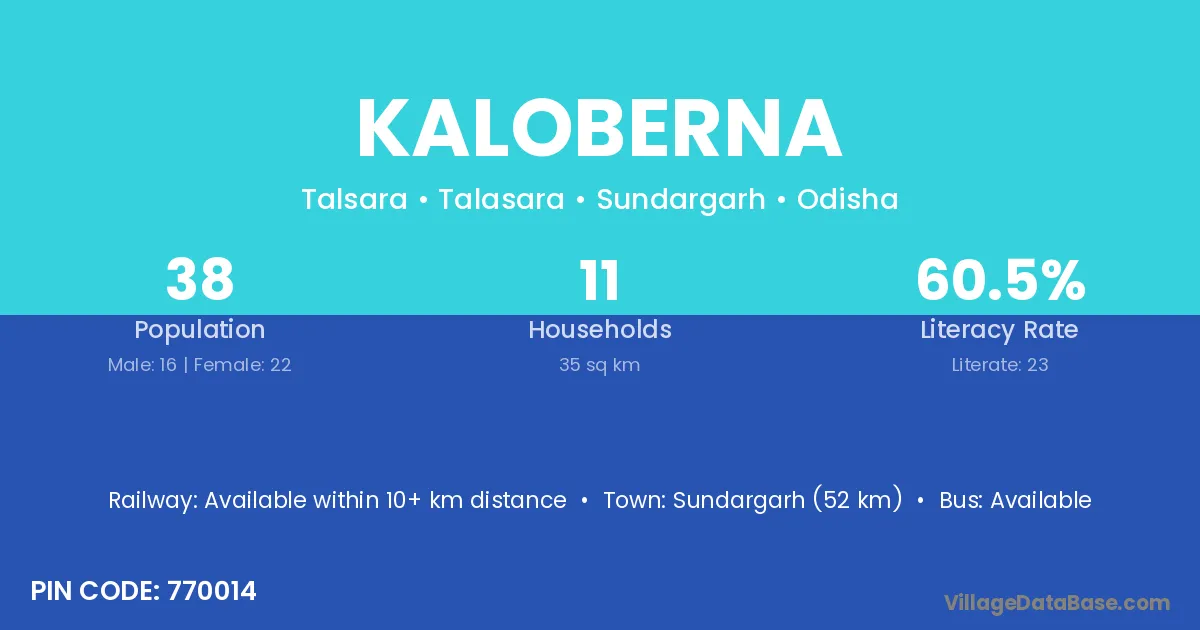 Sundargarh (52 km) is the nearest town to Kaloberna village for major economic activities and is located approximately 52 km away.