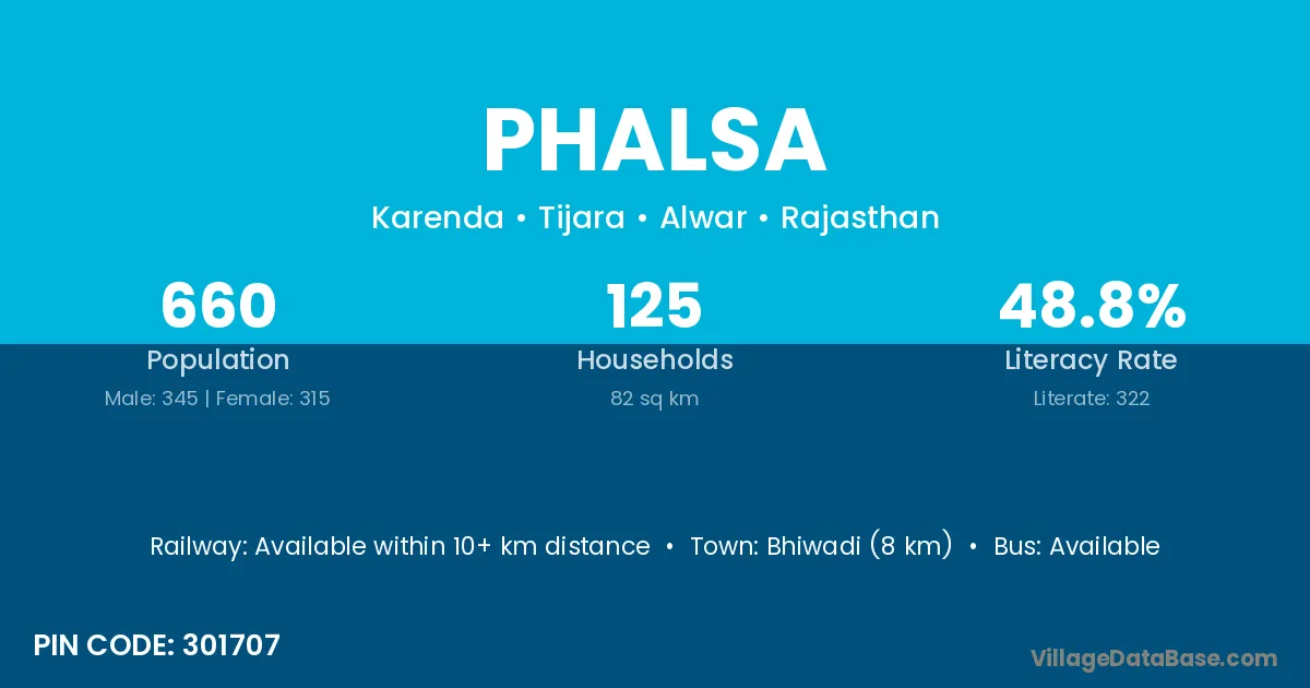 The literacy rate of Phalsa village is 63.98%. Male literacy stands at 70.98% and female literacy at 57.35%.