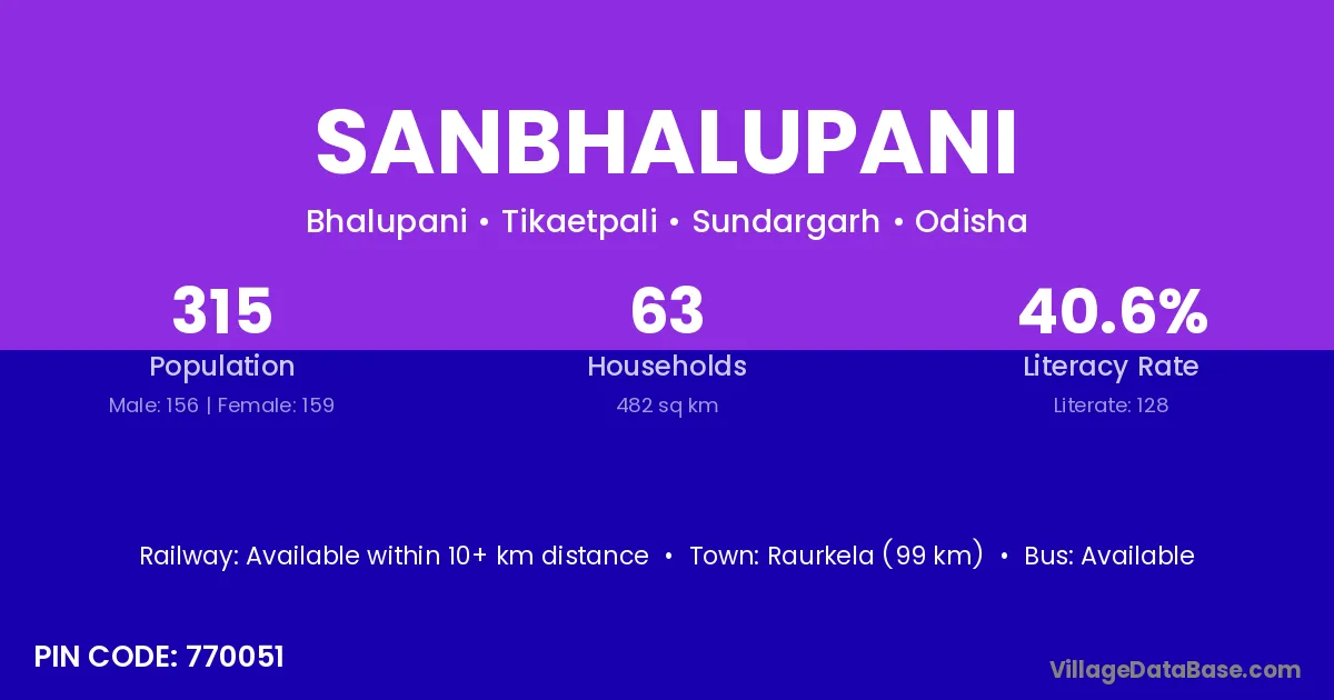 Sanbhalupani village has a total population of 315 people, of which 156 are males and 159 are females.
