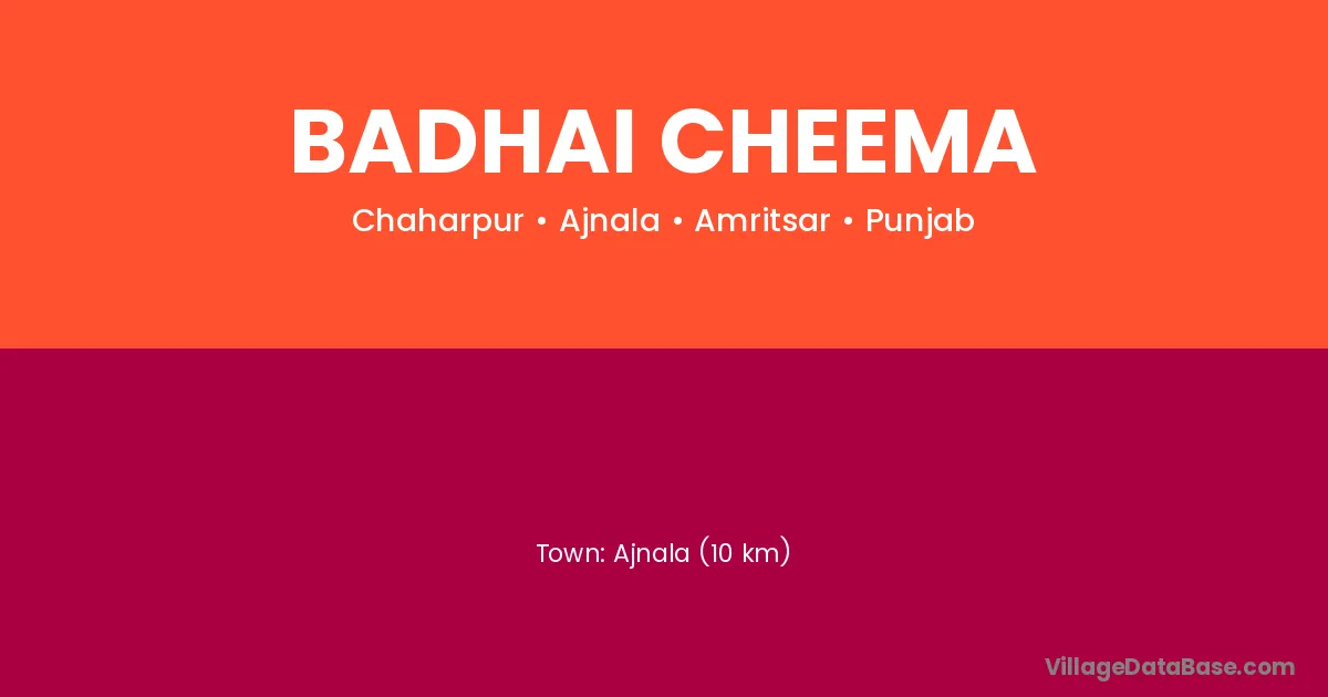 Badhai Cheema village is located in the Ajnala Tehsil of the Amritsar district in Punjab .