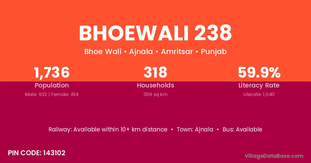 Ajnala is the nearest town to Bhoewali 238 village for major economic activities