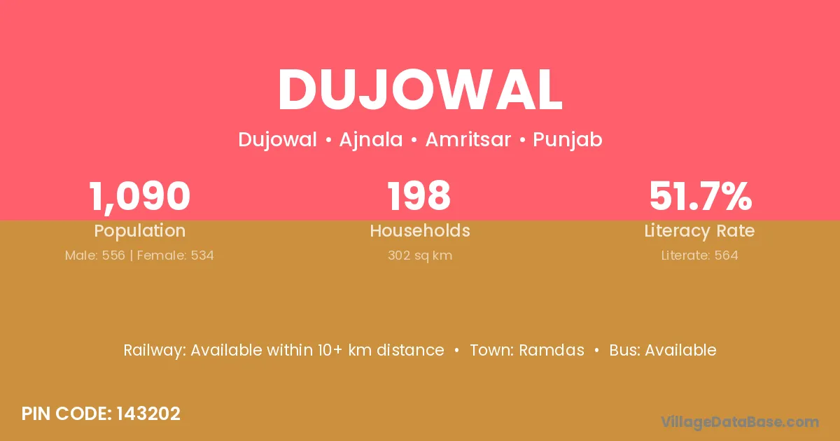 According to Census 2011 information, the village code of Dujowal village is 143202.