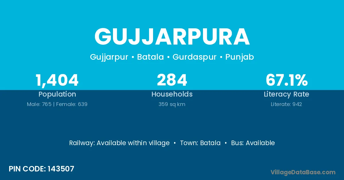 Ajnala is the nearest town to Gujjarpura village for major economic activities