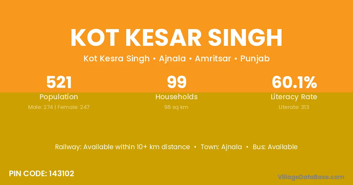 Kot Kesar Singh village has a total population of 521 people, of which 274 are males and 247 are females.