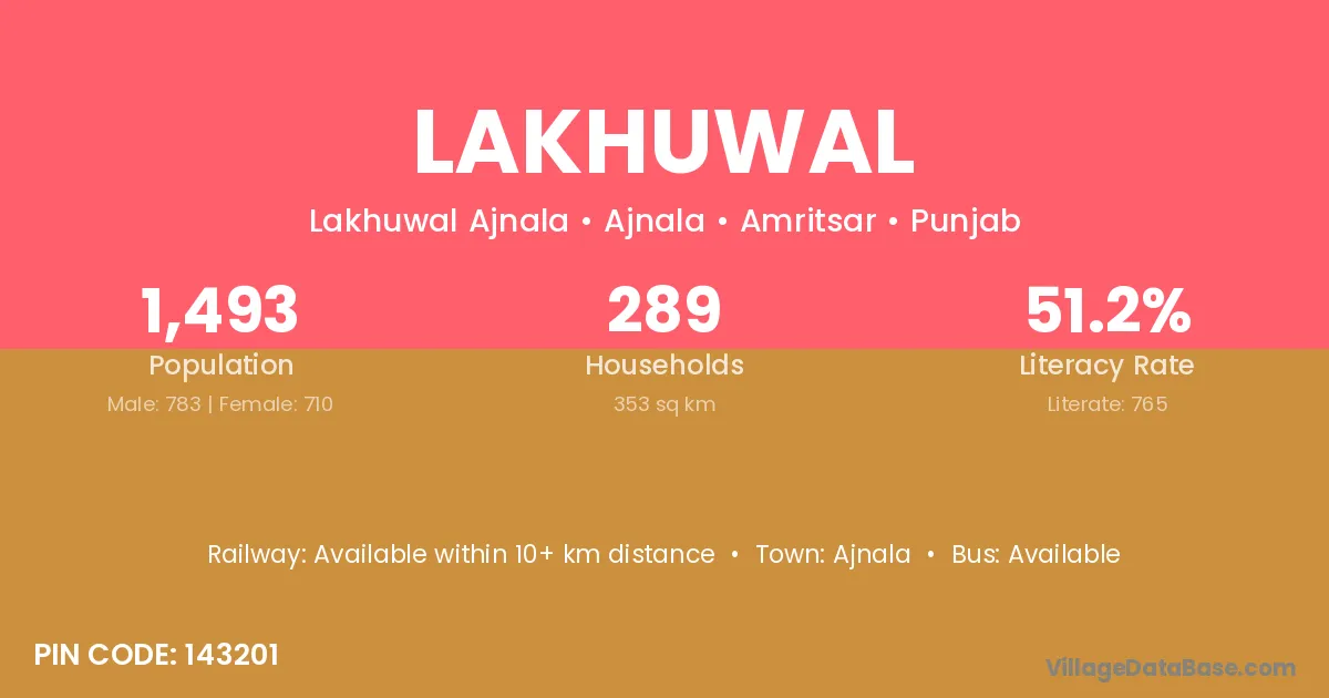 Ajnala is the nearest town to Lakhuwal village for major economic activities