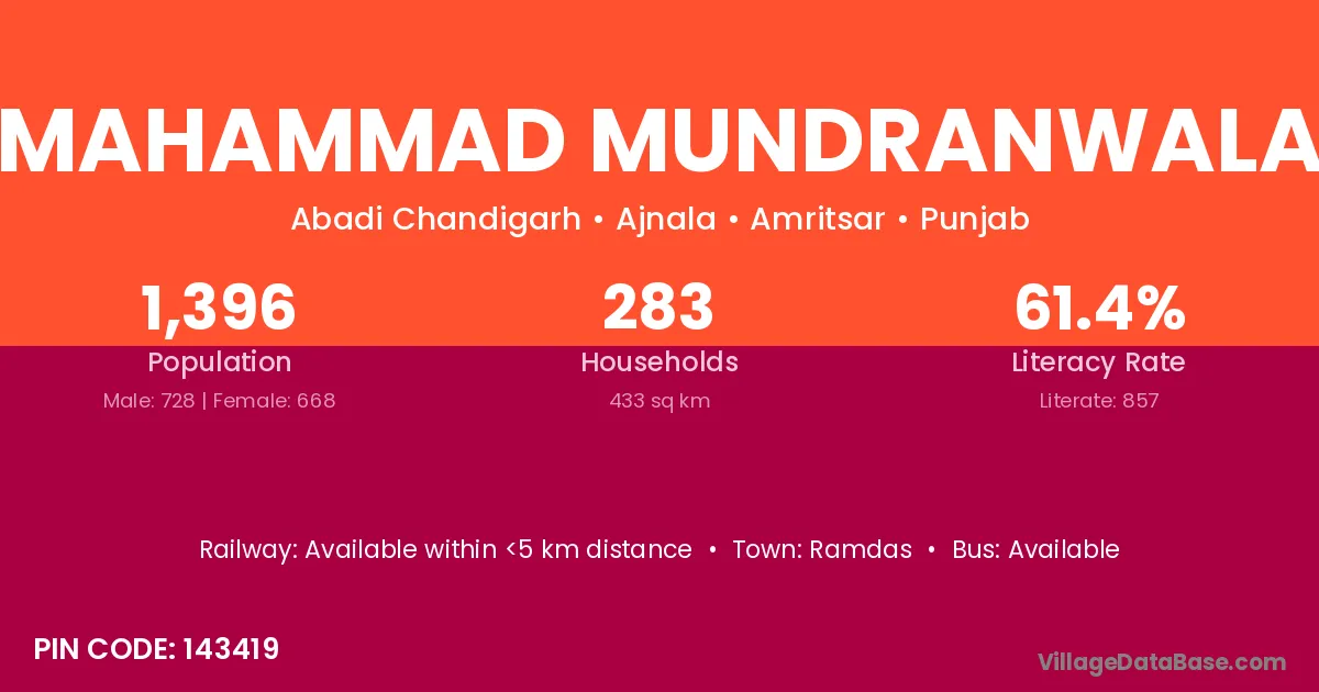 Ramdas is the nearest town to Mahammad Mundranwala village for major economic activities