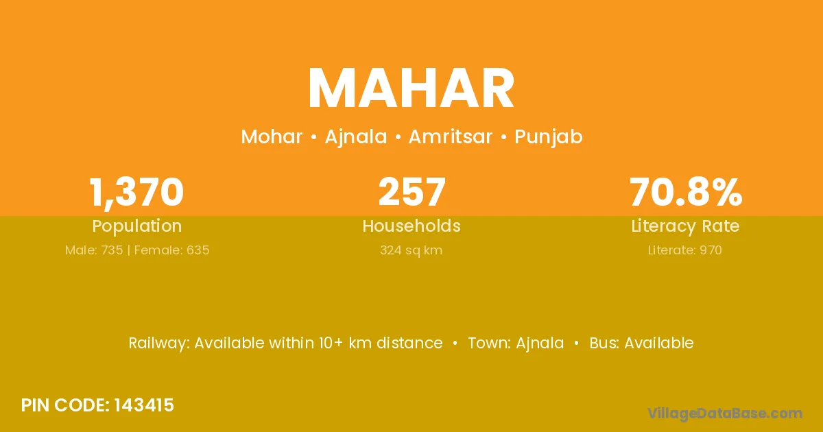 Ajnala is the nearest town to Mahar village for major economic activities