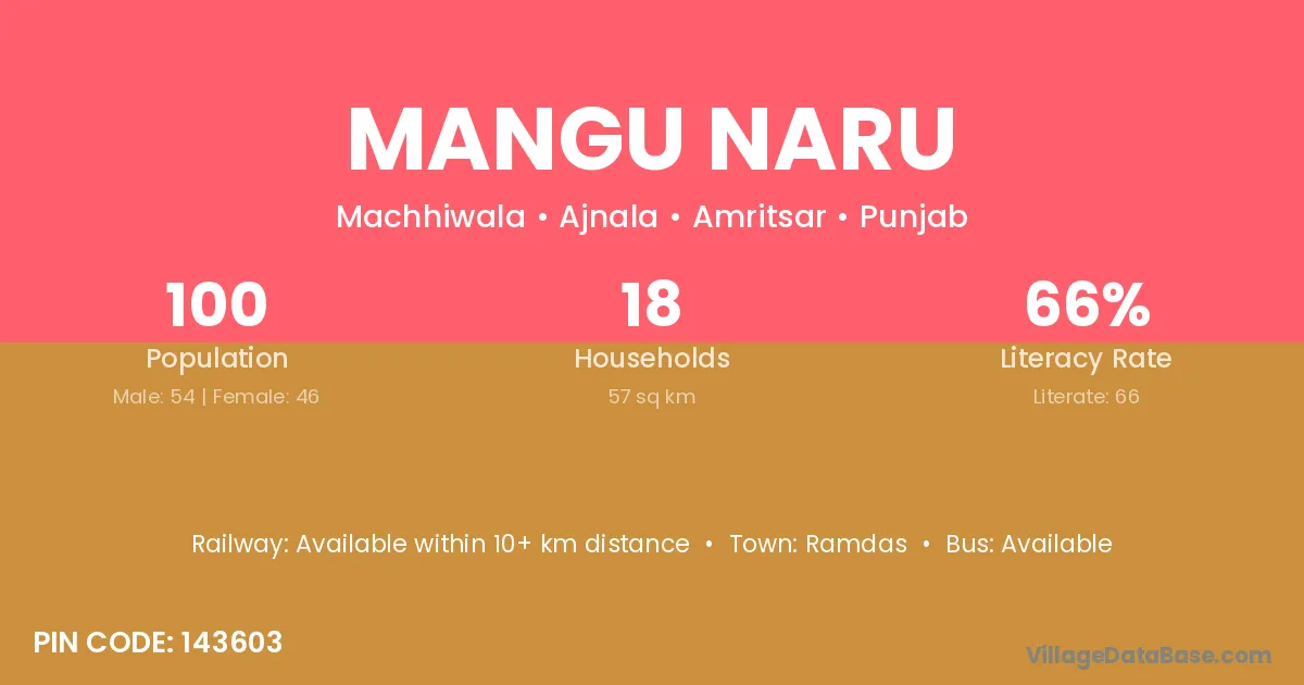 According to Census 2011 information, the village code of Mangu Naru village is 143603.