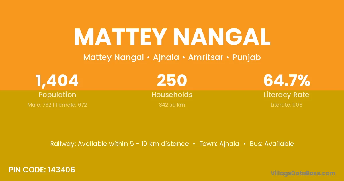 Ajnala is the nearest town to Mattey Nangal village for major economic activities