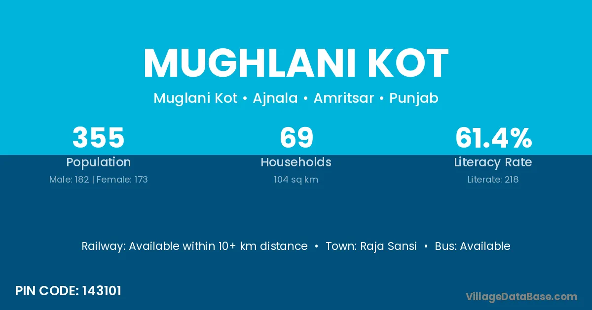 Raja Sansi is the nearest town to Mughlani Kot village for major economic activities
