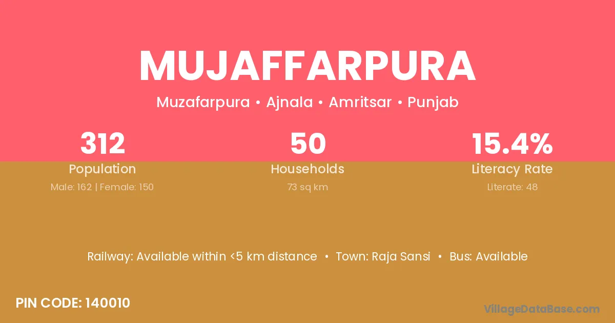 Raja Sansi is the nearest town to Mujaffarpura village for major economic activities