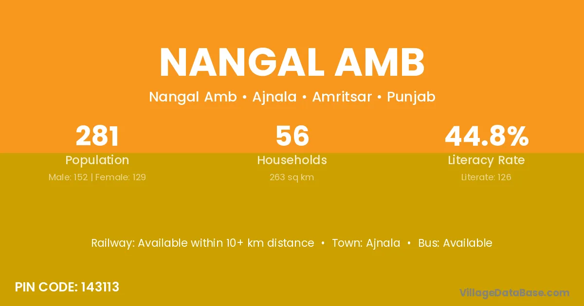 Ajnala is the nearest town to Nangal Amb village for major economic activities