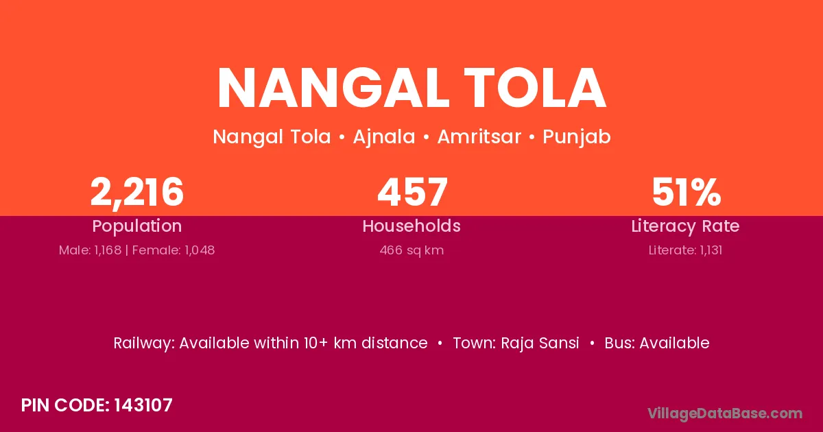Raja Sansi is the nearest town to Nangal Tola village for major economic activities