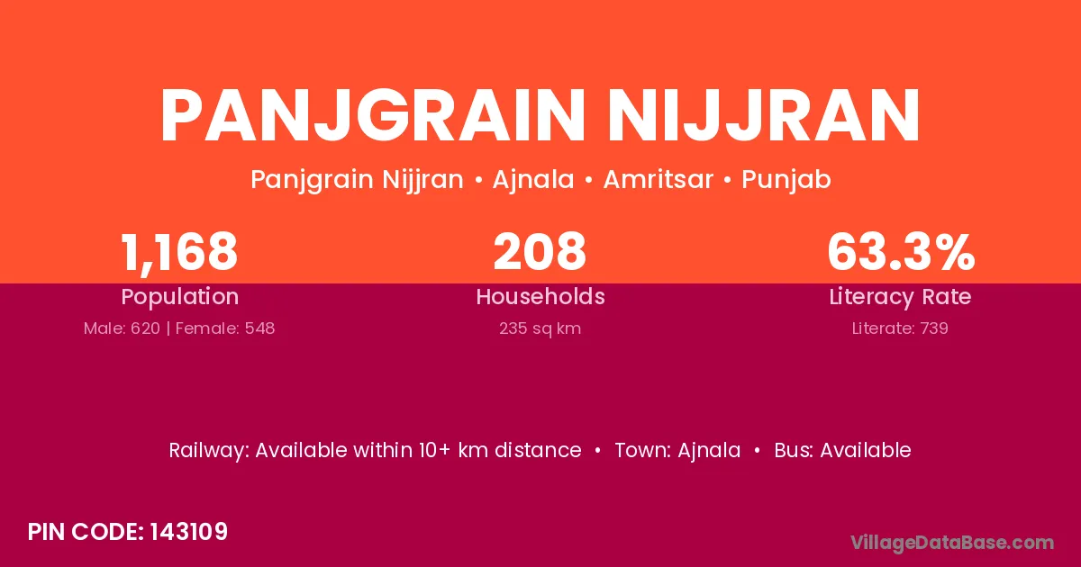 Ajnala is the nearest town to Panjgrain Nijjran village for major economic activities