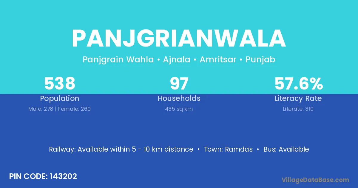 Ramdas is the nearest town to Panjgrianwala village for major economic activities