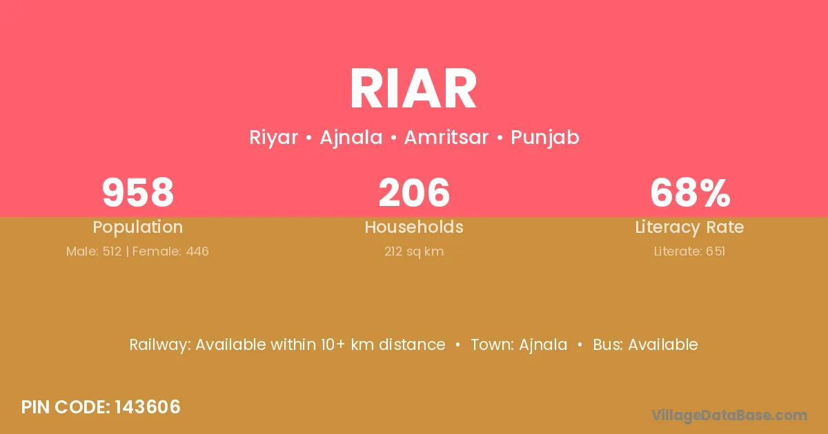 Ajnala is the nearest town to Riar village for major economic activities
