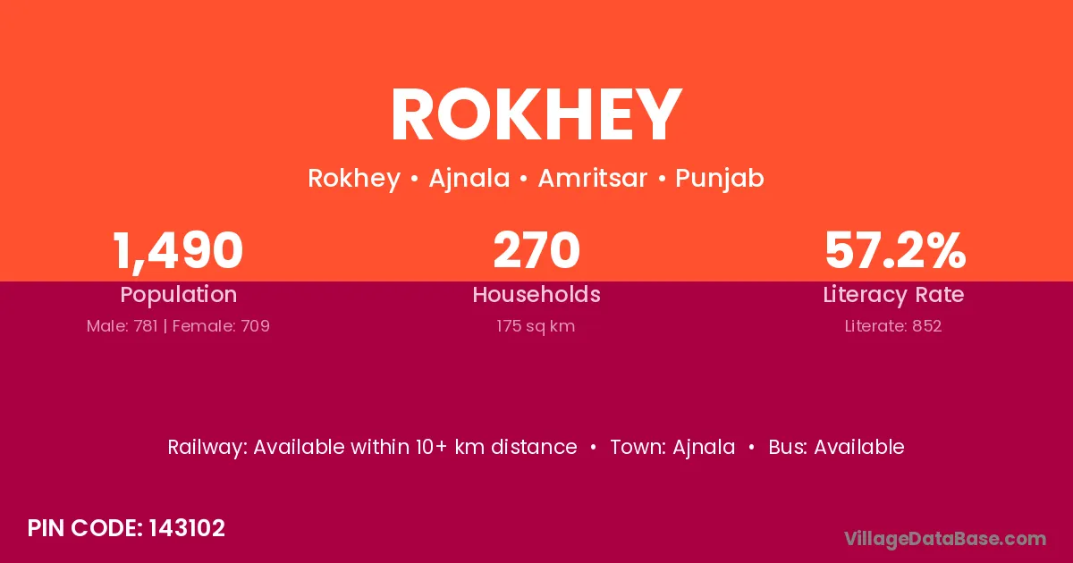 Ajnala is the nearest town to Rokhey village for major economic activities
