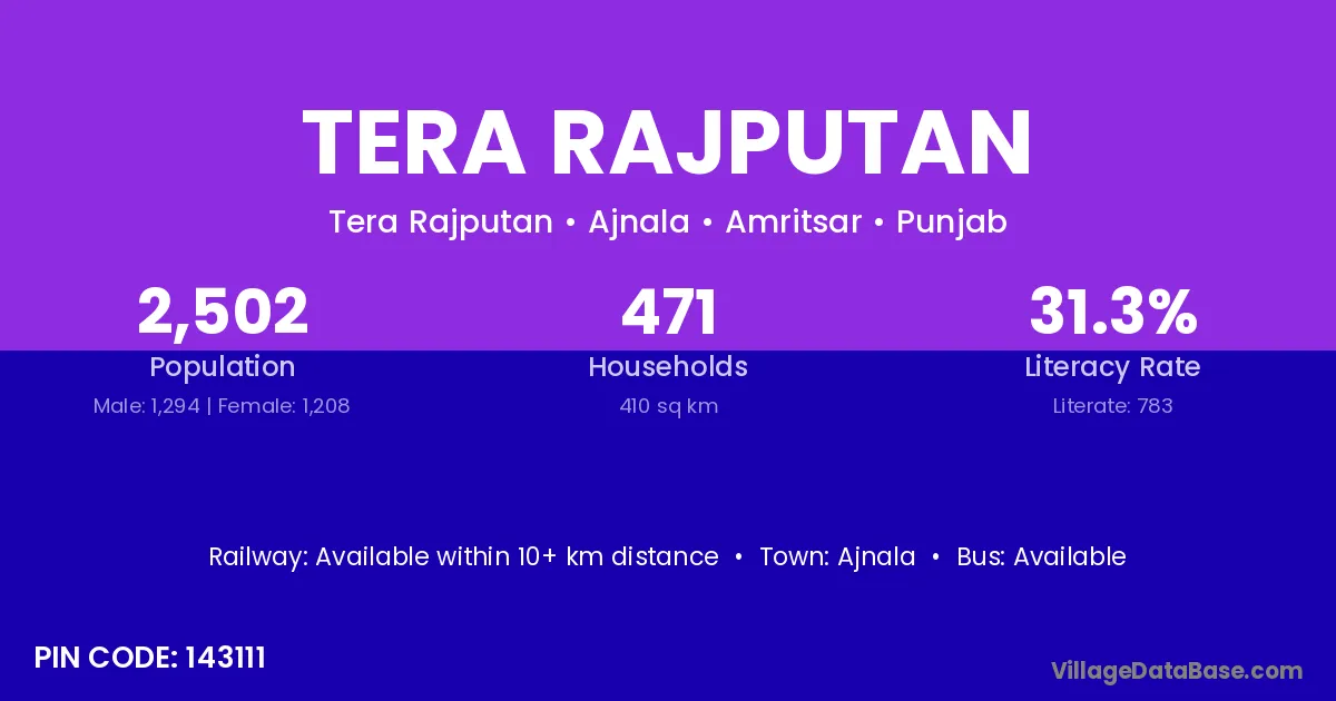 Ajnala is the nearest town to Tera Rajputan village for major economic activities