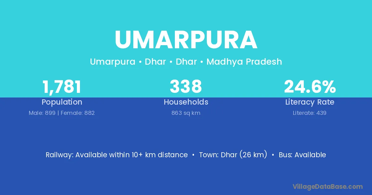 Umarpura village has a total population of 1,902 people, of which 989 are males and 913 are females.