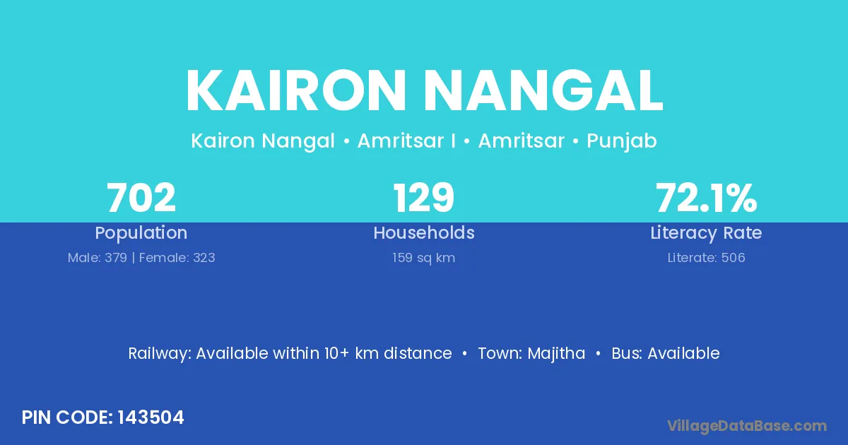 Majitha is the nearest town to Kairon Nangal village for major economic activities